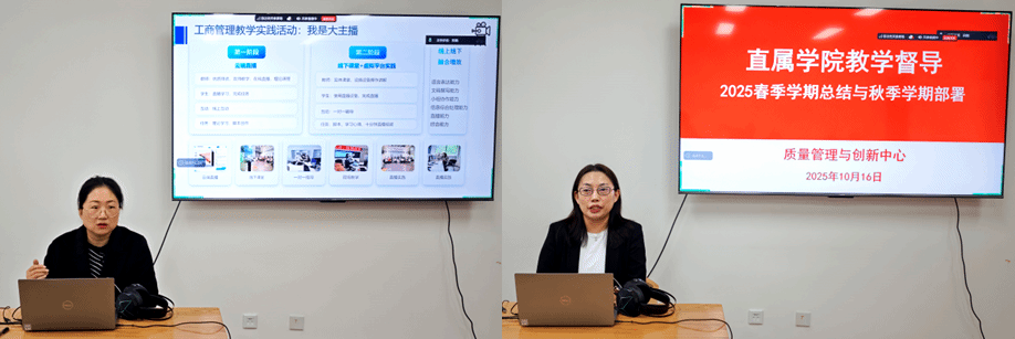 会上,教学管理中心主任田娜首先通报了春季学期教学情况。数据显示,学院教学运行平稳有序,直播课整体质量较高。在部署本学期工作时,她强调教师要紧扣“理论联系实践”核心,既总结过往经验,又聚焦专业特色与学生发展需求设计实践活动,通过项目化、情境化教学,推动知识传授、能力培养与价值塑造深度融合,全面提升课堂教学效果与人才培养质量。学院质量管理负责人罗丹介绍了春季学期的听评课工作开展情况,通过展示优秀教学案例、剖析现存问题,明确新学期督导工作将围绕“促发展”理念实现三转型:从泛化检查转向精准赋能,从单次活动转向闭环管理,从经验判断转向数据驱动。